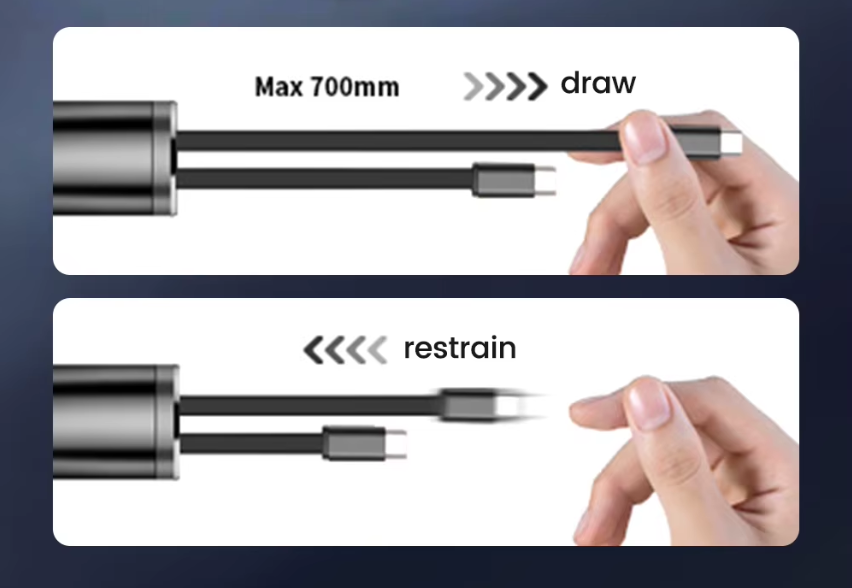Built-in cables extend and retract smoothly—no tangles, no mess, easy storage. -